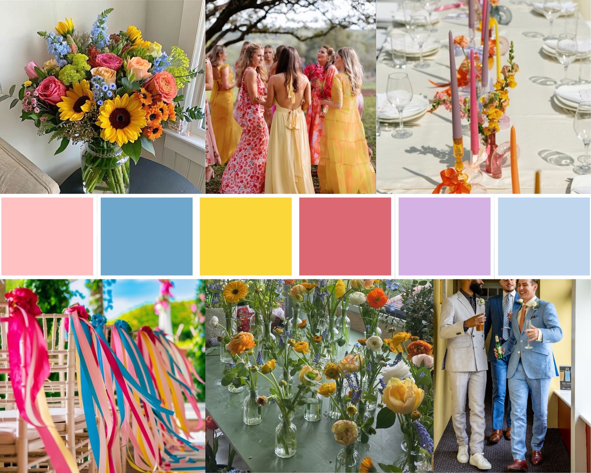 Vi setter pris på om dere kan unngå hvitt og grønt, da disse fargene er forbeholdt brudeparet.